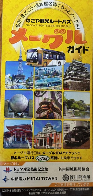 前日から名古屋入りしていて、祝日の明日はどうしようか考えていたところ、ホテルに置いてあった『なごや観光メーグルガイド』のパンフレットが目に留まり、メーグル観光バス1DAYチケット(なんと500円!)で名古屋観光ができることを知りました。